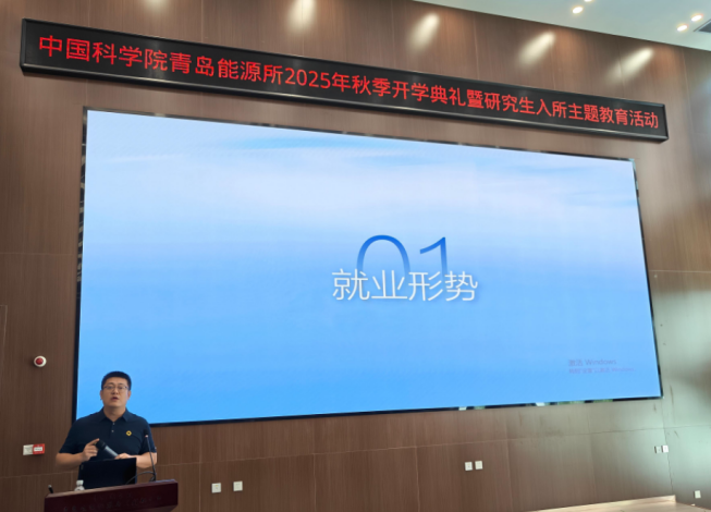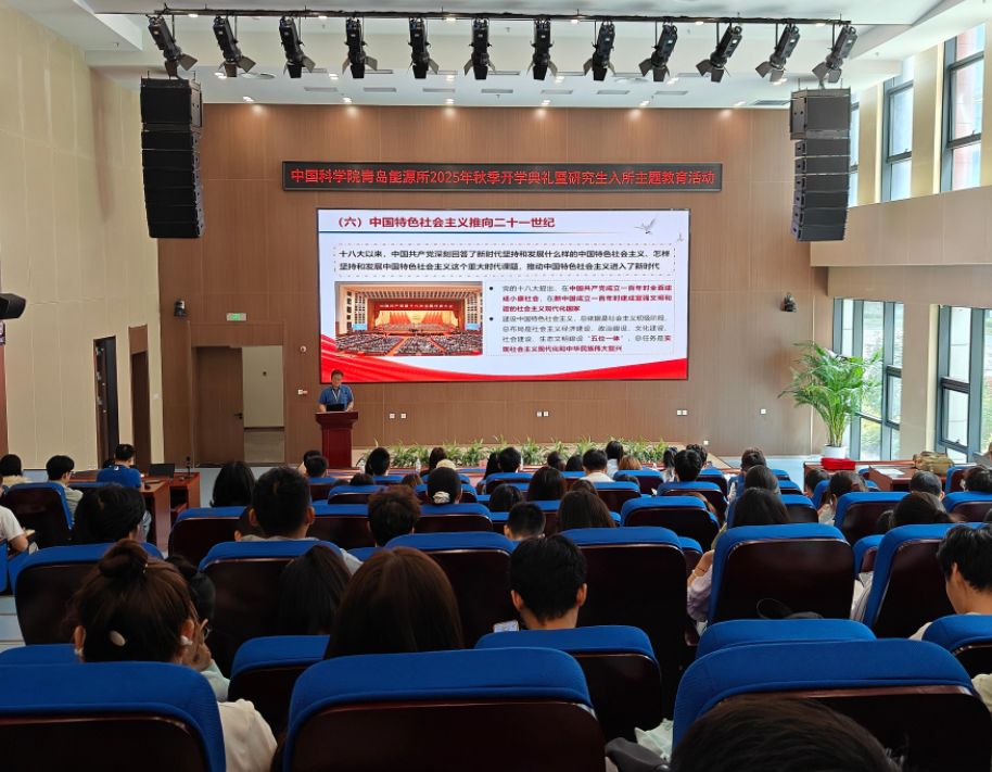为进一步落实立德树人根本任务,引导新生深入了解和融入中国科学院大学和研究所文化,坚定理想信念,9月17日至18日,青岛能源所举办了2025年秋季学期开学典礼暨研究生入所主题教育活动。研究所所长、党委书记吕雪峰,副所长江河清,研究生处全体教育干部及职能部门相关人员出席活动并作报告,2025年新入所国科大籍研究生和联合培养研究生等160余人参加。典礼活动由研究生处副处长王立英主持。