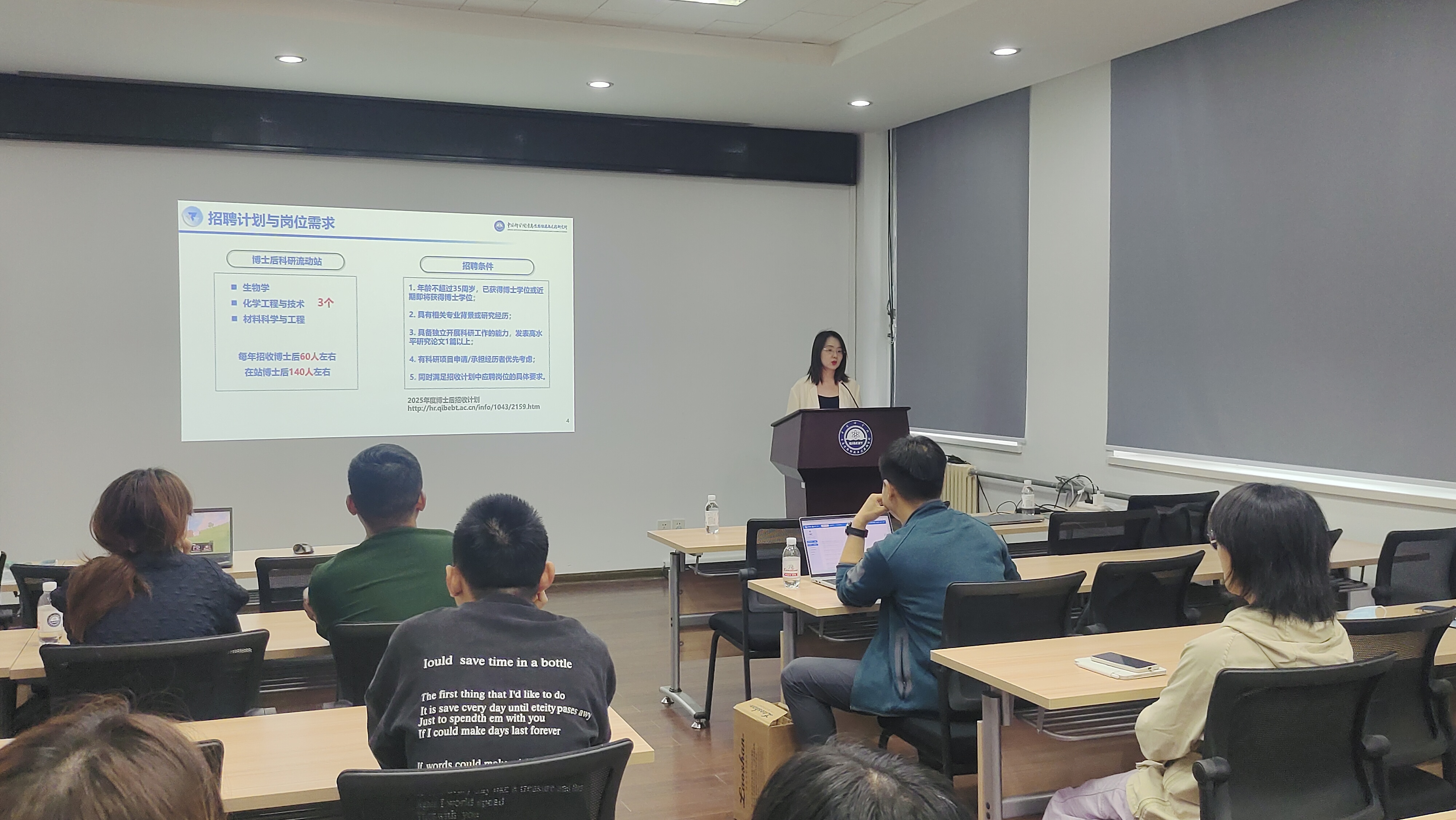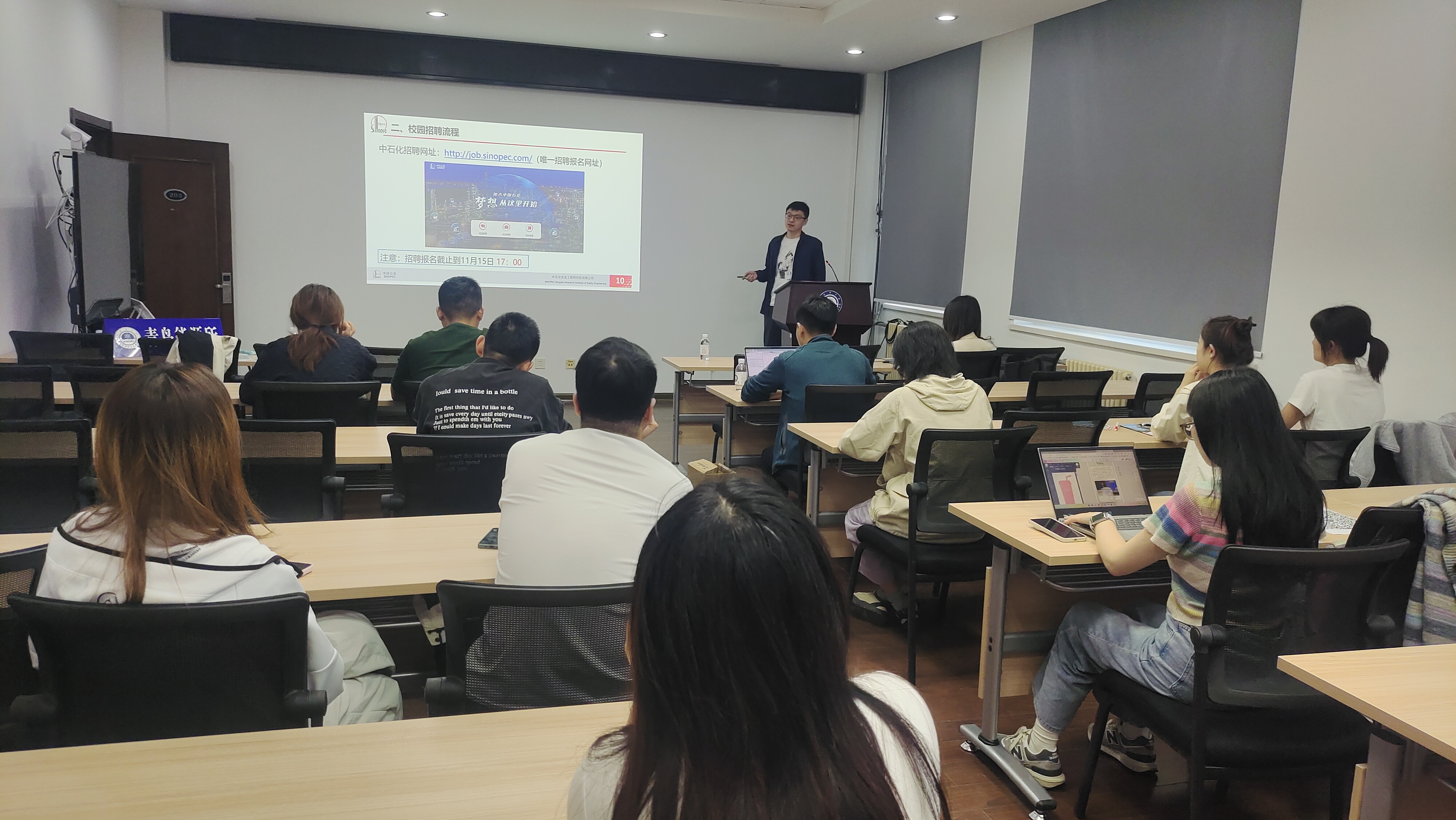 沙龙特别邀请了2022届毕业生、研究所人事处人才主管张倩,2023届毕业生、中国石化安全工程研究院工程师车欣鹏作为分享嘉宾。张倩详细介绍了青岛能源所博士后人才政策,车欣鹏则结合自身经历,分享了在中国石化的求职经验与职场感悟。在互动环节,毕业生们围绕关心的政策细节与求职困惑,与嘉宾进行了深入交流。
