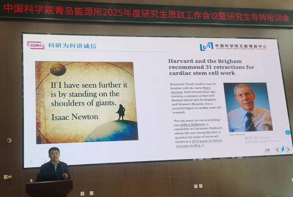 本次会议的召开,进一步明确了青岛能源所研究生思政教育工作和导师育人工作的重点方向。参会老师纷纷表示,通过培训深刻认识到自身在思政育人、科研诚信教育和师生关系构建中的重要责任,后续将把培训所学转化为育人实践,切实提升培养质量。青岛能源所也将以此次会议为契机,持续完善思政育人体系,强化导师队伍建设,着力打造新时代高水平育人团队,推进研究生教育高质量发展,为抢占能源绿色低碳领域科技制高点注入更强动力,为加速实现高水平科技自立自强贡献更大力量。(文/图张强强、苏繁星)