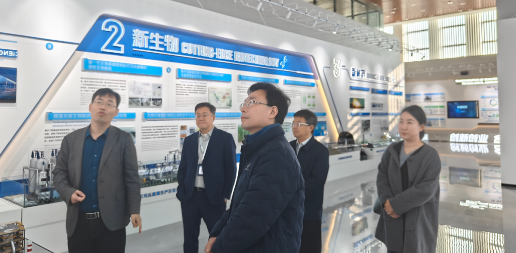 期间,金德鹏一行在吕雪峰、江河清等的陪同下,参观了研究所展厅并听取了研究所教育工作情况专题汇报。参观过程中,江河清详细介绍了青岛能源所在研究生培养、关键技术攻关、科技成果转化、人才队伍建设、平台支撑保障等方面的发展历程与突出成就。金德鹏对研究所近年来在研究生培养方面取得的成绩和在新能源、新生物、新材料领域取得的突破性进展表示高度认可,认为青岛能源所深厚的科研积淀和鲜明的学科特色为研究生培养提供了坚实基础,并就科研育人与思政教育融合发展、导学思政、学生心理健康、招生就业等话题与陪同人员深入交流。