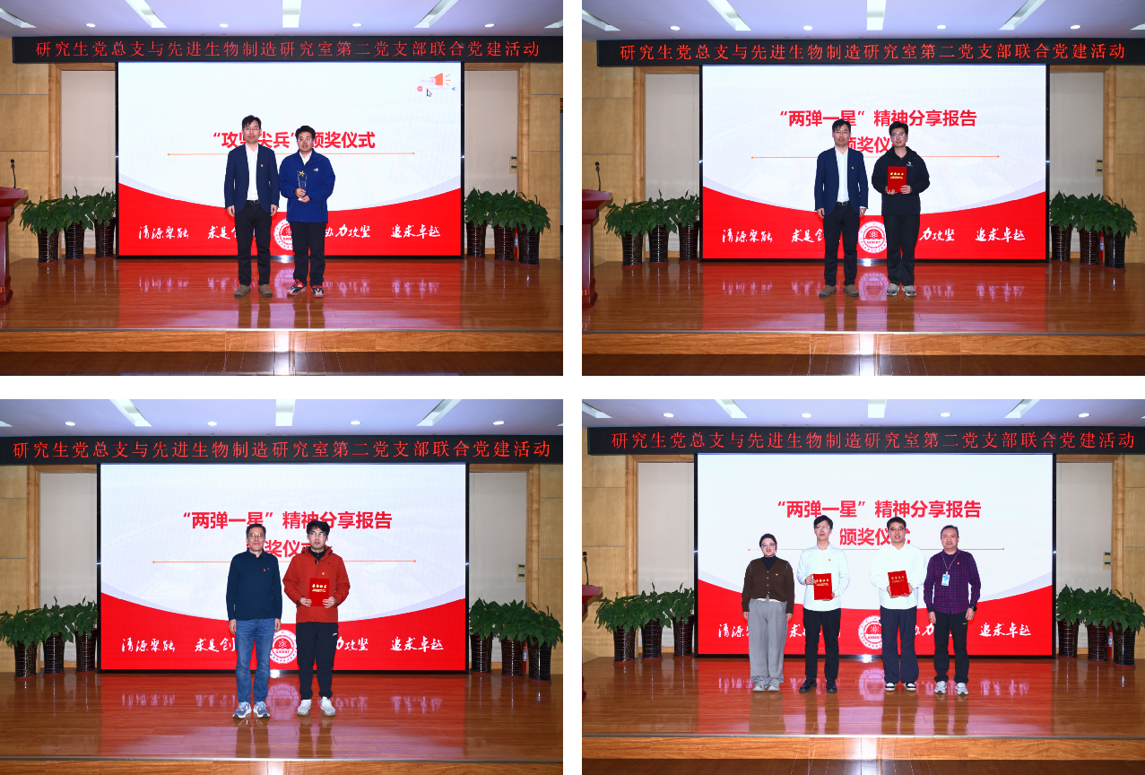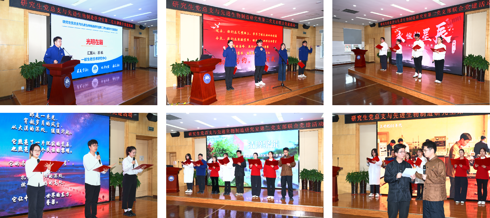在理论学习的基础上,活动聚焦榜样引领与精神传承。先进生物制造研究室的苏航同志作为“攻坚尖兵”代表,深情讲述了科研路上的奋斗历程与感悟,生动诠释了共产党员在科研一线的先锋本色。随后,研究生党总支各支部围绕“两弹一星”精神,带来了《祖国不会忘记》的深情演绎、《永恒的星辰》的崇高致敬、《星光承志,薪火相传》的激昂诗朗诵及《星耀初心》的生动情景剧等精彩纷呈的分享,共同重温了那段激情燃烧的岁月,深刻感悟了爱国奉献、勇攀高峰的精神伟力。