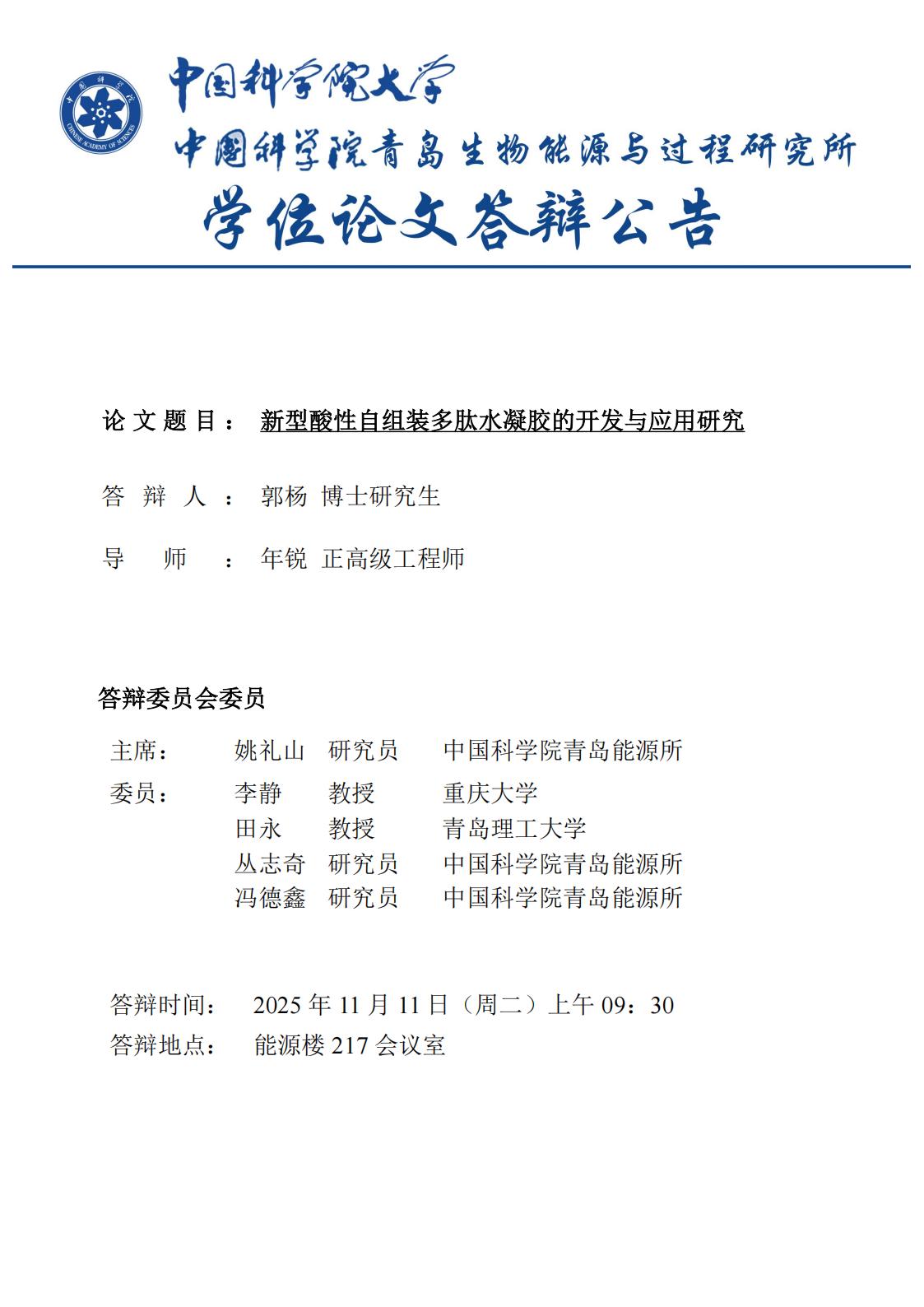 11月11日蛋白质材料研究组学位论文答辩会